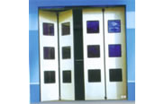 電動折疊門門體采用優質型鋼、保溫板及有機玻璃制作。特點是保溫、采光性能好;由于門體開啟后為折疊形,節省了空間。開門機引進國外技術生產,具有結構緊湊、外形美觀、性能可靠等特點。該門適用于消防車庫等場合??刂菩问椒郑憾嘟M、單組和單扇控制。根據用戶要求可配備遙控裝置,實現遠距離操作,是消防車庫用門最理想的產品。